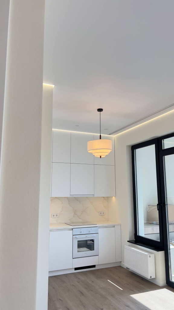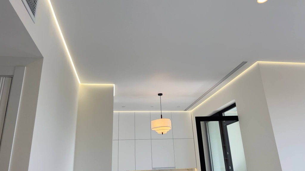 Матовый натяжной потолок с теневым примыканием.
